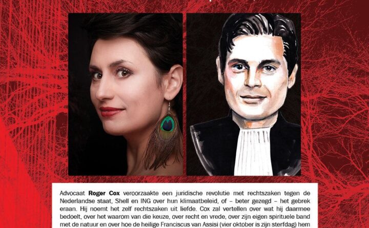 Op 4 oktober geeft advocaat Roger Cox een lezing over zijn werk en rechtszaken tegen de Nederlandse staat, Shell en ING in verband met hun klimaatbeleid en het gebrek eraan. Ekaterina speelt stukken die natuur als inspiratiebron hebben. Meer info en tickets